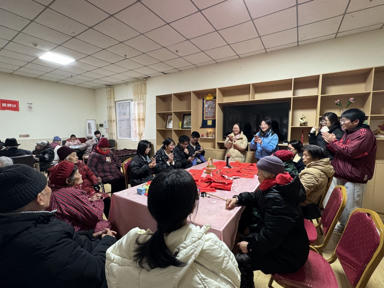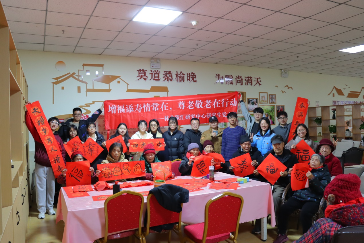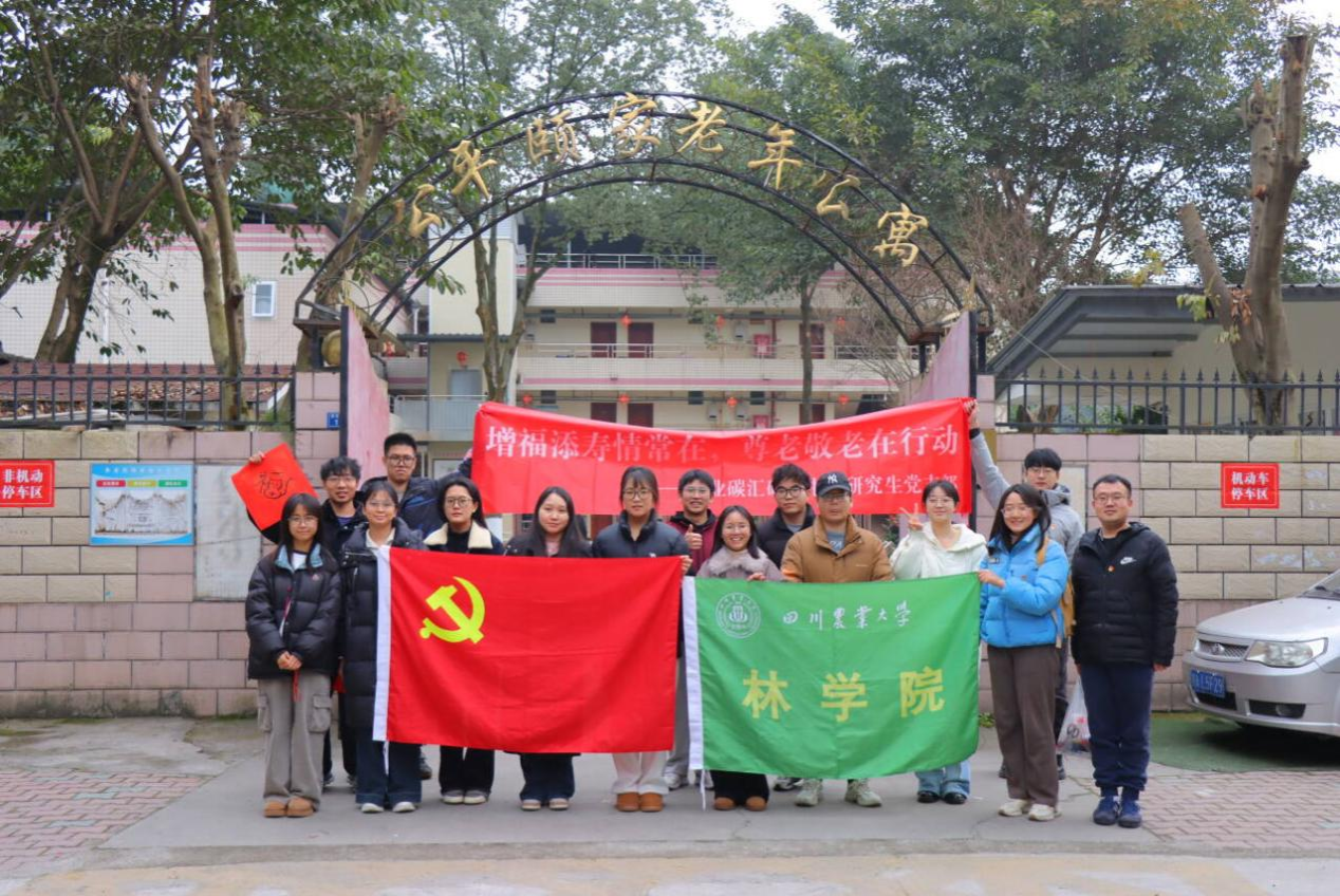 老龄化是我国全面建设社会主义现代化国家新征程中的一个基本国情,也是推进中国式现代化必须面对的重大课题。为积极应对我国人口老龄化,弘扬中华民族尊老爱幼的传统美德,关心老年人的身心健康,丰富他们的思想情感,同时增强广大党员的服务意识,践行党全心全意为人民服务的根本宗旨,并发扬和传承中华民族优秀传统文化,9428cn太阳集团林业碳汇研究中心研究生党支部于2024年12月20日组织全体成员前往成都市温江区公平颐家老年公寓开展了一场主题为“增福添寿情常在,尊老敬老在行动”的党日活动。