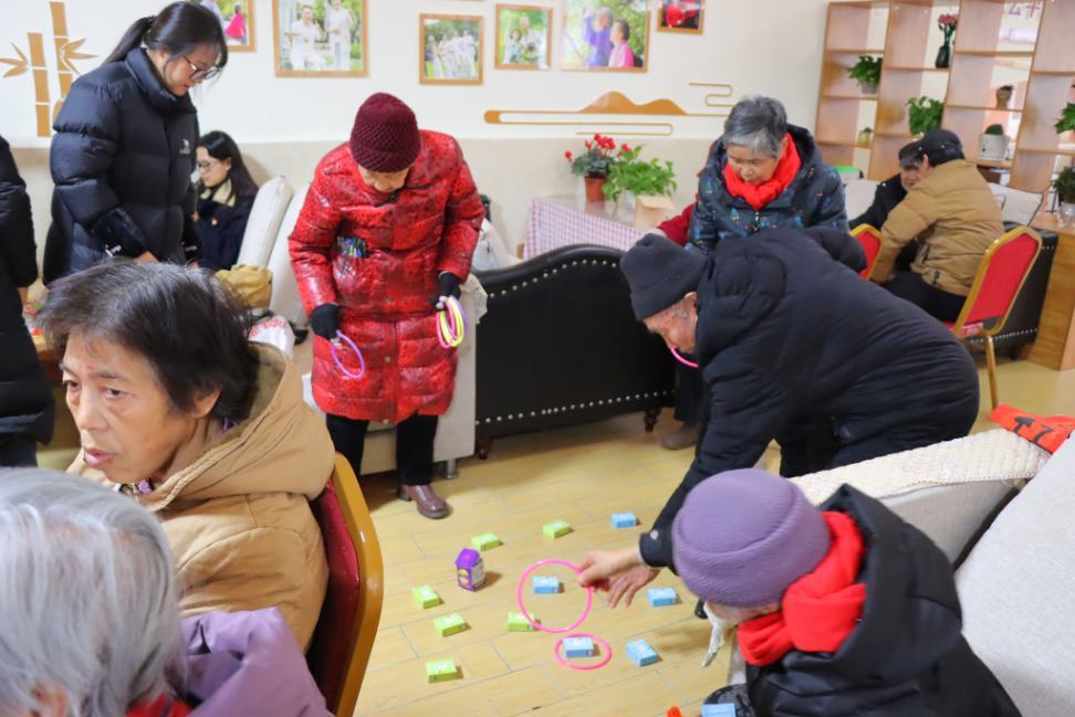 支部的同志们还与老人进行了互动游戏。如套圈小游戏、击鼓传花等,通过互动游戏,促进了同志们与老人的交流,使气氛更加活跃。最后,在活动即将结束时,同志们与老人合唱了《南泥湾》、《东方红》等歌曲,在歌声中结束了这一天的活动,最后拍下大合照作为留念。