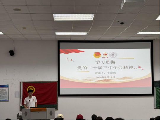 校第十一期青马班学员王世钧现场领学党的二十届三中全会精神,深入宣讲习近平总书记关于全面深化改革的一系列新思想、新观点,引导广大团员青年深刻学习领会全会精神,奋力书写中国式现代化的青春篇章。