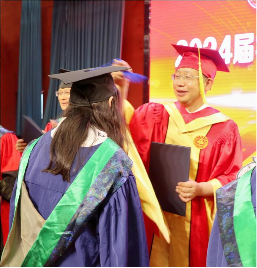 党委副书记杨娟宣读了授位名单。2024届研究生、本科生分别上台接受授位。
