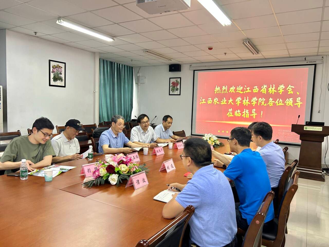 5 月 22 日下午,学院与江西农业大学9428cn太阳集团在5教307会议室举行学科建设专题调研交流会。江西省林学会会长郭正福,江西农大9428cn太阳集团院长陈伏生,副院长张令率队来访,学院院长潘远智,党委书记胡迅,副院长徐振锋、谭波参会。