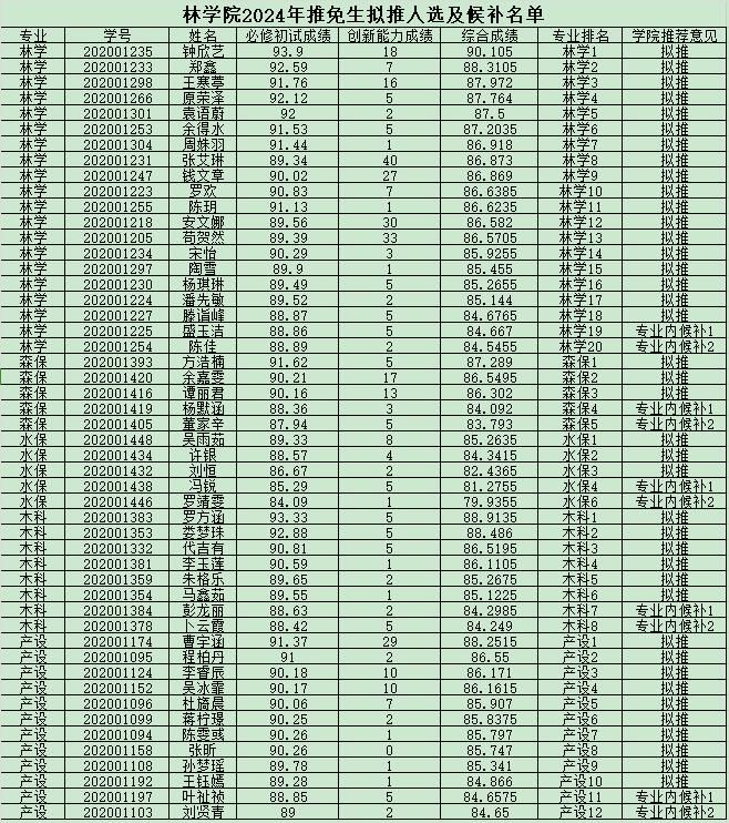 关于递补规则的说明:如出现专业内有推荐人选自愿放弃等需要递补的情况则在专业内候补人选中依次递补;如出现学校增加推免指标等需要递补的情况则按照林学、森保、水保、木科、产设的顺序在各专业候补排名第一的人选中依次递补。
