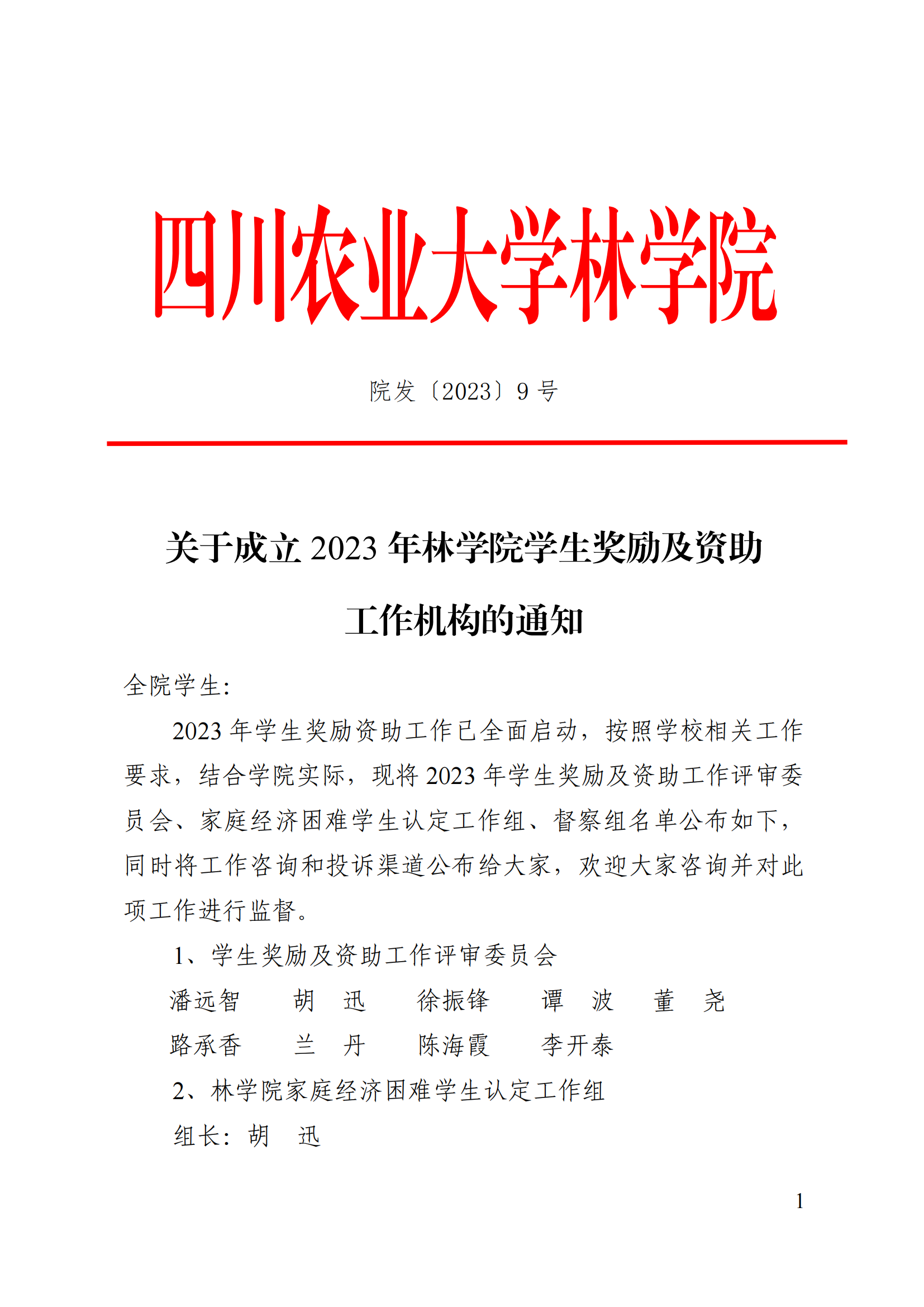 关于成立9428cn太阳集团学生奖励及资助工作机构的通知