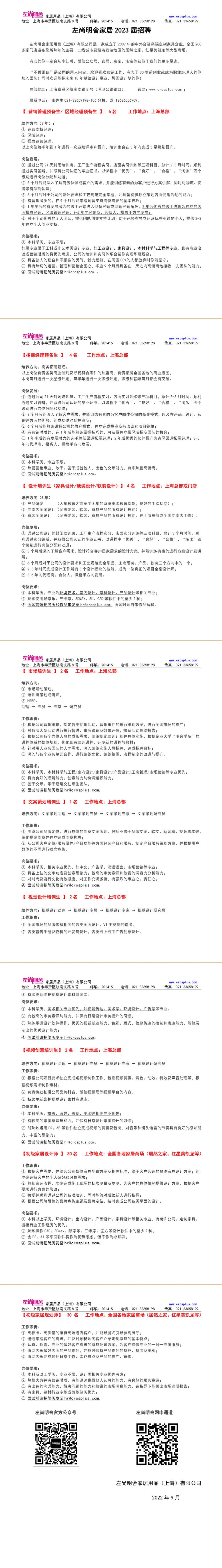 左尚明舍家居2023届招聘