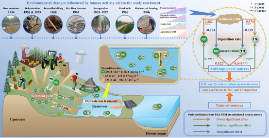 小型水库遍布全球人口密集的山地丘陵区,其泥沙有机碳和总氮拦截作用不可忽视,拦截规律与大型水库不同。前人研究尚未关注非喀斯特小流域水库有机碳和总氮沉积。基于核素沉积物定年,本文探讨了过去约60年以来典型花岗岩小流域水库沉积物岩芯有机碳和全氮浓度的深度变化趋势,以及有机碳和全氮沉积速率的历史变化趋势,阐明了有机碳和全氮沉积对流域生态环境演变的响应,揭示了水库拦截泥沙有机碳和全氮的历史变化规律及其驱动机制。与该团队此前报道的喀斯特小流域水库以及复合岩性流域大型水库相比,凸显了非喀斯特小流域水库有机碳和全氮拦截的特征。研究结果为非喀斯特山地丘陵区水土保持和生态清洁小流域建设提供了理论依据。