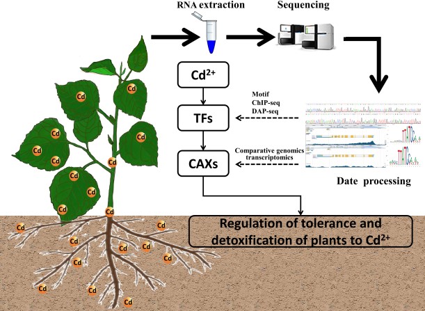 镉是一种有毒重金属,严重影响人类健康和生态安全。阳离子/H+交换器(CAX)家族是一种独特的金属转运蛋白,在植物体内镉的吸收、转运和缓解过程中起着至关重要的作用。虽然对毛果杨全基因组分析的研究很多,但对CAX家族基因,尤其是Cd胁迫的研究还很少。在这项研究中,对杨树CAX家族的全基因组分析确定了7个与胁迫相关的CAX基因。进化树分析表明,CaCA家族基因聚为4个类群。此外,在杨树中通过串联复制获得了7对基因。顺式作用元件分析在不同PtrCAX的启动子中发现了许多与胁迫相关的元件。一些PtrCAX在干旱、虫咬和机械伤害下表达上调,这表明它们可能在调节胁迫反应中发挥作用。在镉胁迫下,根中所有CAX基因表达上调。我们的发现表明,植物可能通过TF-CAXs模块来调节它们对Cd胁迫的反应。酵母异源表达发现CAXs可以增强植物对重金属的耐性,对CAX家族的全面研究为杨树重金属污染的植物修复提供了科学依据。