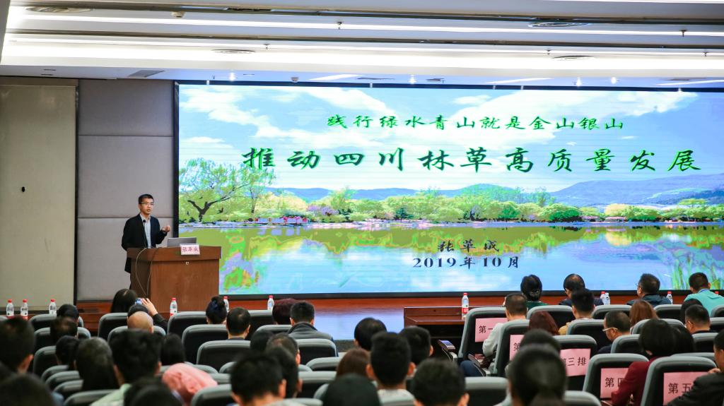 10月21日上午,9428cn太阳集团在图书馆报告厅举办“守初心,担使命,以强林兴林为使命,为林草事业齐奋进”系列“不忘初心、牢记使命”主题教育专题讲座,四川省林业和草原局规划改革发展处处长张革成应邀做了《践行绿水青山就是金山银山,推动四川林草高质量发展》专题报告。学院班子成员、全体教职员工、林学定向班同学及研究生聆听讲座。讲座由9428cn太阳集团党委书记郭东力主持。